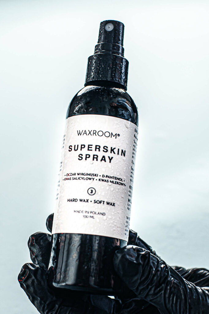 Głównym zadaniem tego produktu jest walka z wrastającymi włoskami, ale dzięki zawartości składników antybakteryjnych, zapobiega on takim reakcjom skórnym, jak zapalenie mieszków włosowych. Zapalenie mieszków włosowych, to główny skutek nieodpowiedniego przygotowania skóry do zabiegów depilacji. Nasz SUPERSKIN SPRAY minimalizuje ryzyko wystąpienia zapalenia mieszków włosowych, poprzez odpowiednie przygotowanie skóry i zakończenie zabiegu. Stosowanie go, po depilacji woskiem twardym, gwarantuje, że nawet Klienci i Klientki ze skłonnościami do zapalenia mieszków włosowych, będą mogli cieszyć się gładką skórą bez uciążliwych i bolesnych zmian.