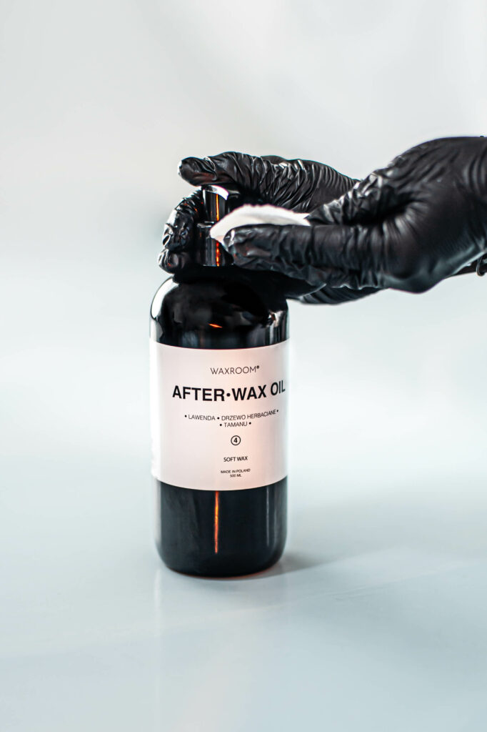 AFTER WAX OIL usuwa resztki wosku miękkiego z naskórka, a także ma działanie antybakteryjne.